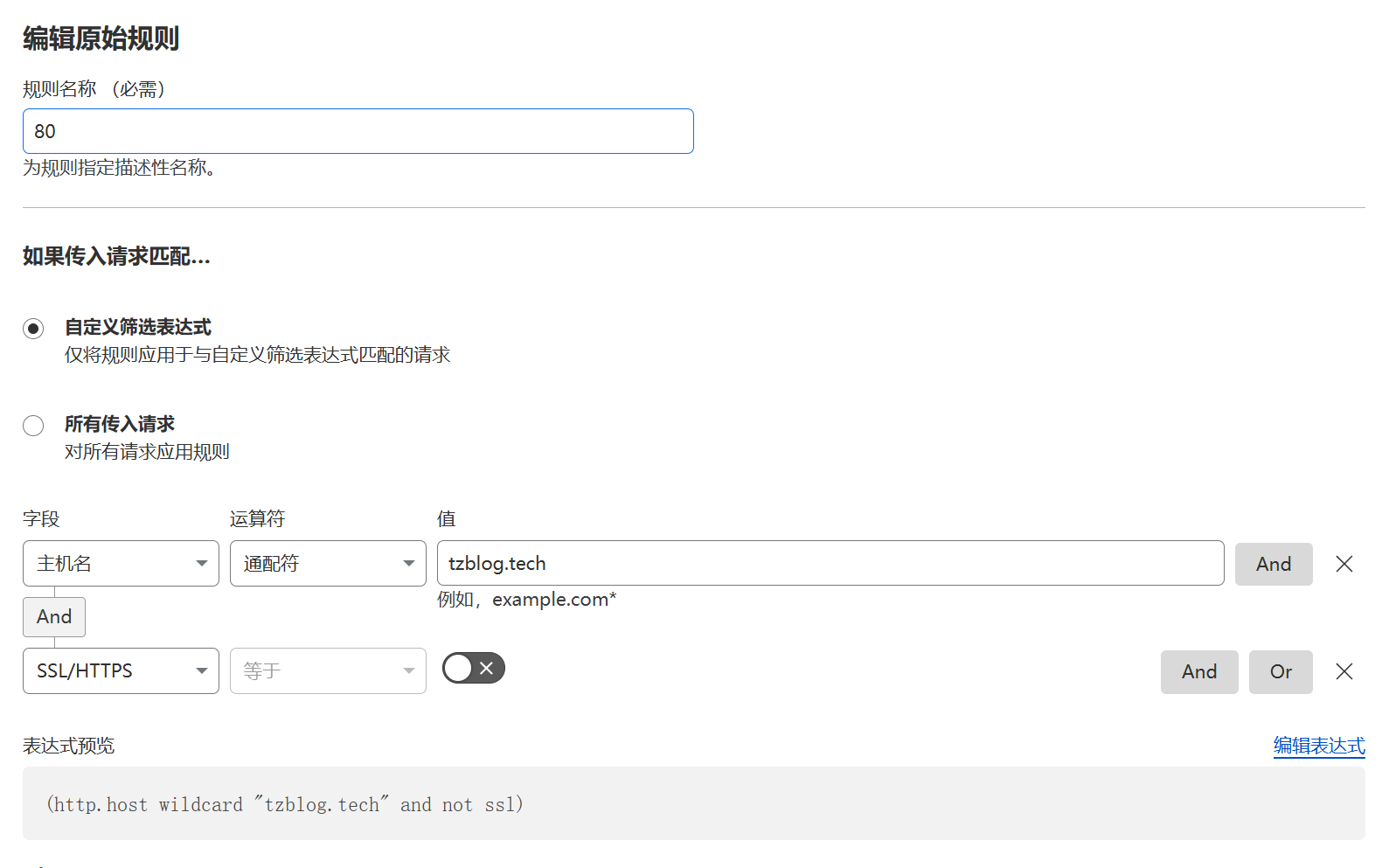到CF面板的规则(Rules)板块 -> Origin Rules -> 创建规则